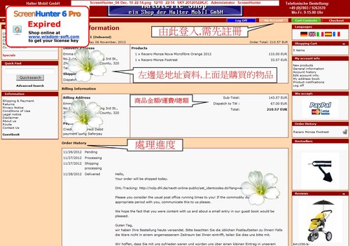 運費67歐元 (你在勾選好你要買的貨物後他自己會算出運費,確認再進行訂購的過程)