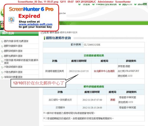 總之在11/29那天他就在訂單查詢的網頁上面給你中華郵政的網址,告訴你可以去那邊查你的貨物